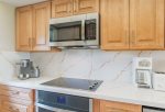 Next to the living room you will find an upgraded kitchen, which features a breakfast bar with two stools. This is a wonderful place to sit and relax, as your chef-for-the-day prepares your party a fabulous meal. Dish duty becomes a lot less painful when you have gorgeous fairway views as your companion.