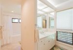 The master bedroom showcases some of the most splendid views of the villa. These include views of the West Maui Mountains, then the lush green rolling hills down to the Pacific, plus the island of Lanai. During the early morning hours, the private lanai offers a wonderful space to enjoy a hot cup of Kona Coffee and watch the sunrise. Morning rainbows soon follow as Maui awakes, her magical and peaceful embrace a signature of this most special place on earth.